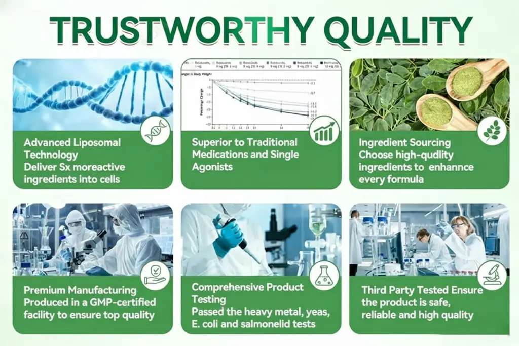 Benefits: Supports effective weight reduction and appetite regulation, stabilizes blood glucose levels, promotes cardiovascular health, reduces chronic low-grade inflammation, and helps alleviate metabolism-related fatigue.