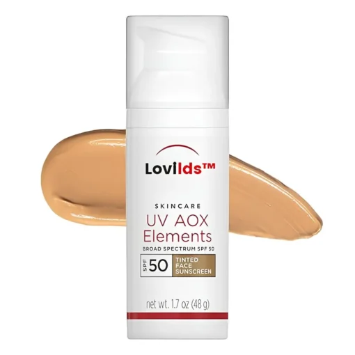 LOVILDS™ UV AOX Elements Tinted Mineral Sunscreen is a dermatologist-recommended SPF 50 facial sunscreen that provides broad-spectrum UVA/UVB protection while nourishing your skin. This 100% mineral-based formula is enriched with powerful antioxidants to combat environmental stressors, smooth fine lines, and keep your skin hydrated throughout the day.