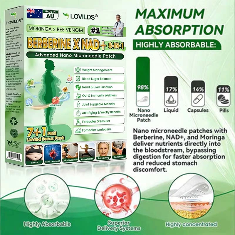 𝐋𝐎𝐕𝐈𝐋𝐃𝐒® Moringa· 𝐁𝐞𝐞 𝐯𝐞𝐧𝐨𝐦 · Berberine x NAD+ 10-in-1 Advanced Nano Microneedle Patch: 98% Absorption Rate, Transforming Weight, Liver, Gut & Skin Health